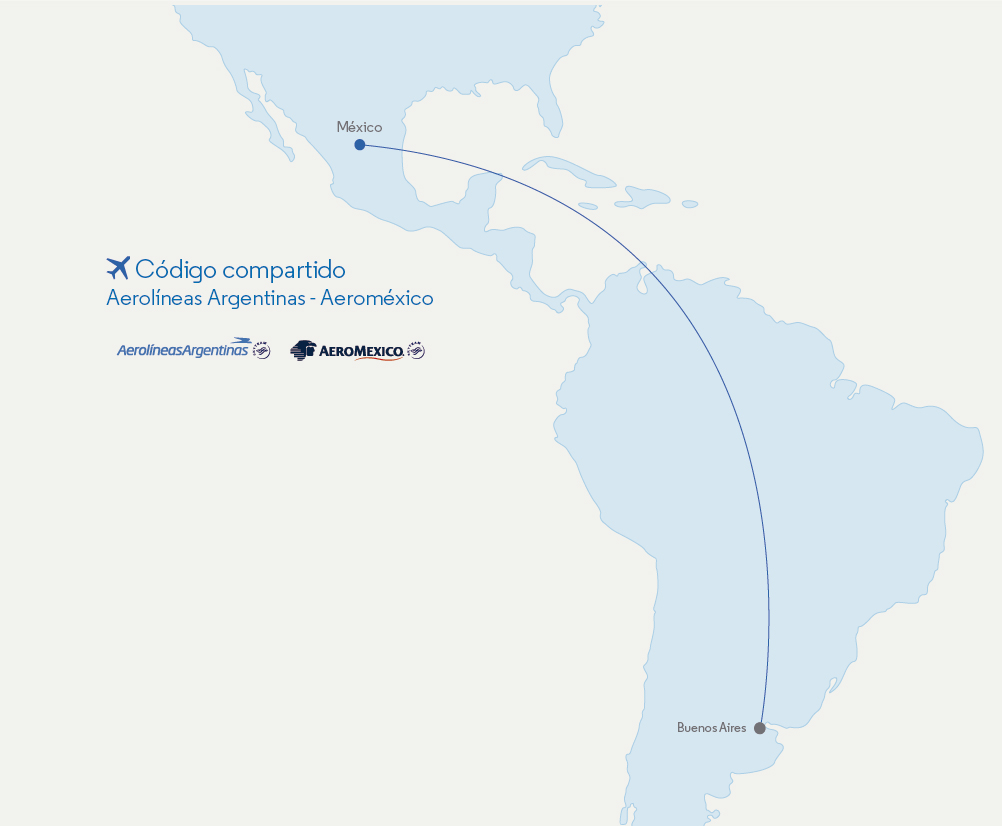 Potrai  volare tutti i giorni tra Buenos Aires e Città del Messico, in voli operati da Aeroméxico (AM) e commercializzati da Aerolíneas Argentinas.
